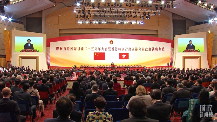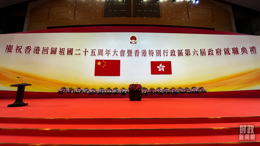 当天上午,庆祝大会暨就职典礼在香港会展中心举行。25年前,1997年6月30日午夜至7月1日凌晨,中英两国政府香港政权交接仪式也是在此举行。历经百年沧桑的香港回到祖国怀抱,当时的历史画面已经成为全体中国人的集体记忆。