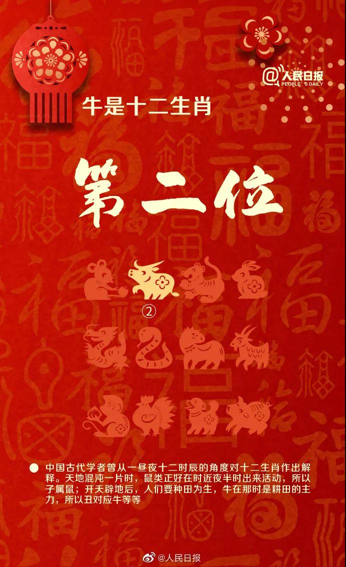 5.牛为什么排在十二生肖第二位?牛年这些知识点了解下:辛丑牛年从2021年2月12日开始至2022年1月31日结束,共354天;牛年没有闰月,是个平年;牛年只有23个节气……这些牛年知识,你发现了吗?此外,牛为什么排在十二生肖第二位,看图了解下!(人民日报)