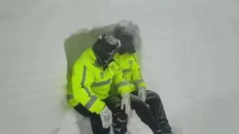 3.辛苦了!新疆民警徒手挖雪洞躲风雪:近日,新疆和静县艾尔肯达坂路段,民警在能见度不足5米的道路上,组织清除道路积雪。救援机械无法到达的地方,就用铁锹挖、徒手刨、为车轮绑防滑链,帮受困车辆脱困。遇风吹雪,2名民警徒手凿出雪洞,在洞内避风休息。(人民网)