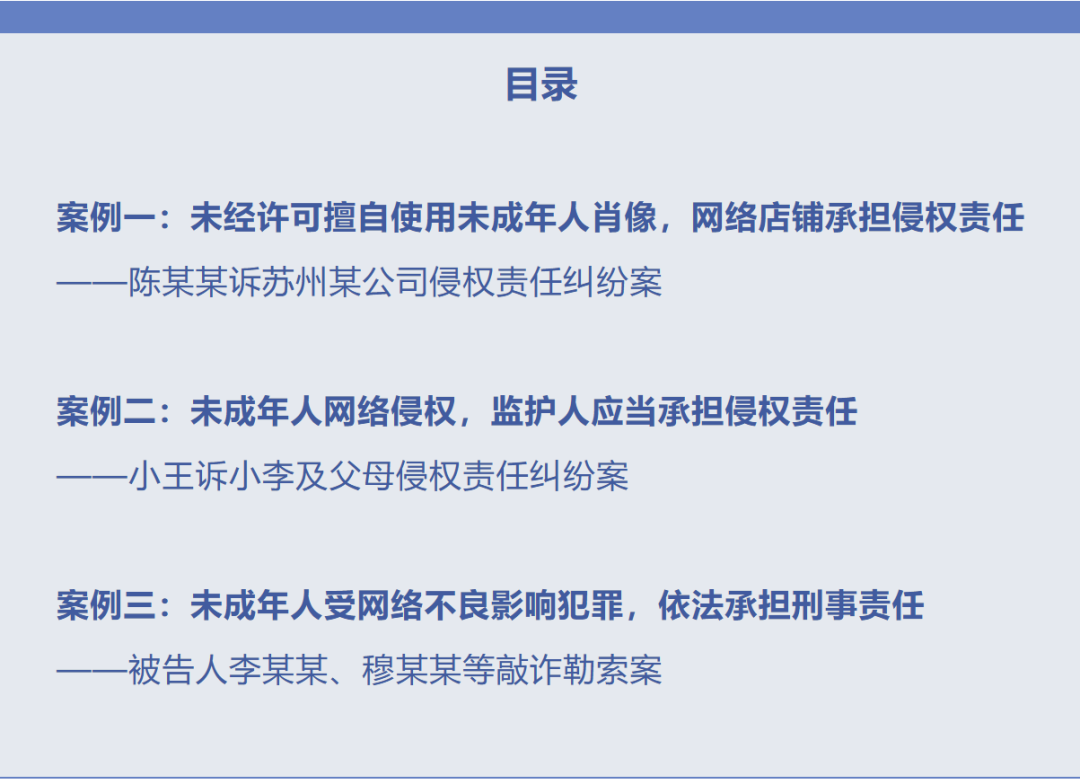 1.最高人民法院发布涉未成年人网络保护与违法犯罪惩处典型案例:为切实发挥司法裁判示范、教育、引领功能,维护未成年人合法权益,规范未成年人涉网络言行,强化未成年人涉网络犯罪惩处与预防,最高人民法院选取三件典型案例予以发布。(最高人民法院)
