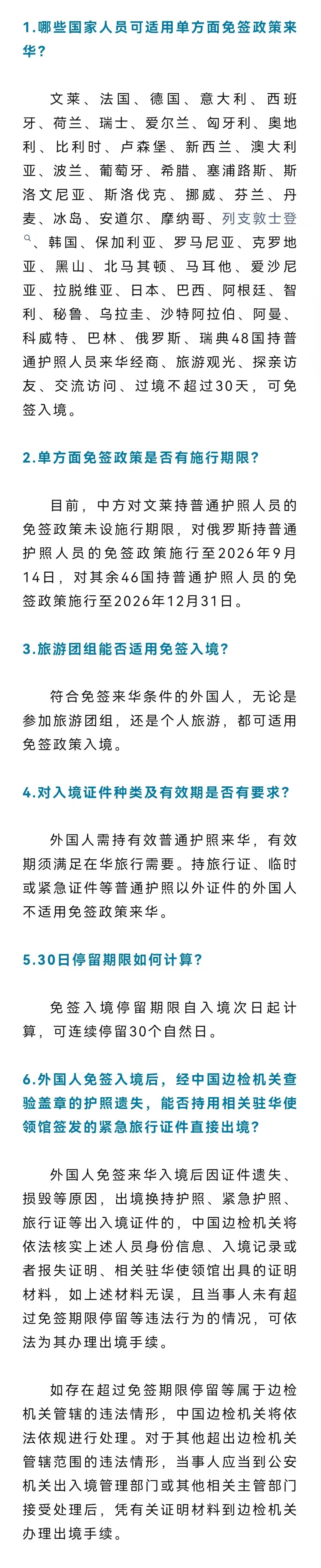 1.48国来华免签是否有期限?如何计算?解答来了:11月23日,国家移民管理局针对单方面来华免签政策常见问题进行解答。(国家移民管理局微信公众号)