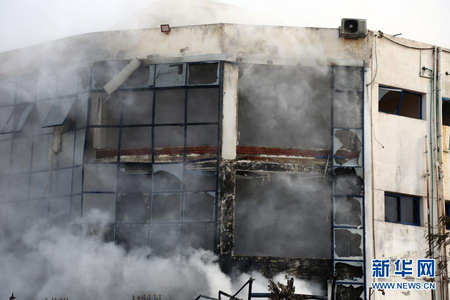 3月11日,在埃及盖卢比尤省,失火的制衣厂内冒出浓烟。新华社发(艾哈迈德·戈马摄)