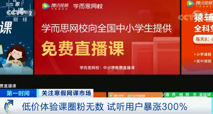 某教育平台精品课负责人 罗媛:试听课大概从9元到49元不等,我们还推出公益课,这个就是完全免费的。近一个星期初中的语文和物理,大概试听课用户能够比原来多300%。