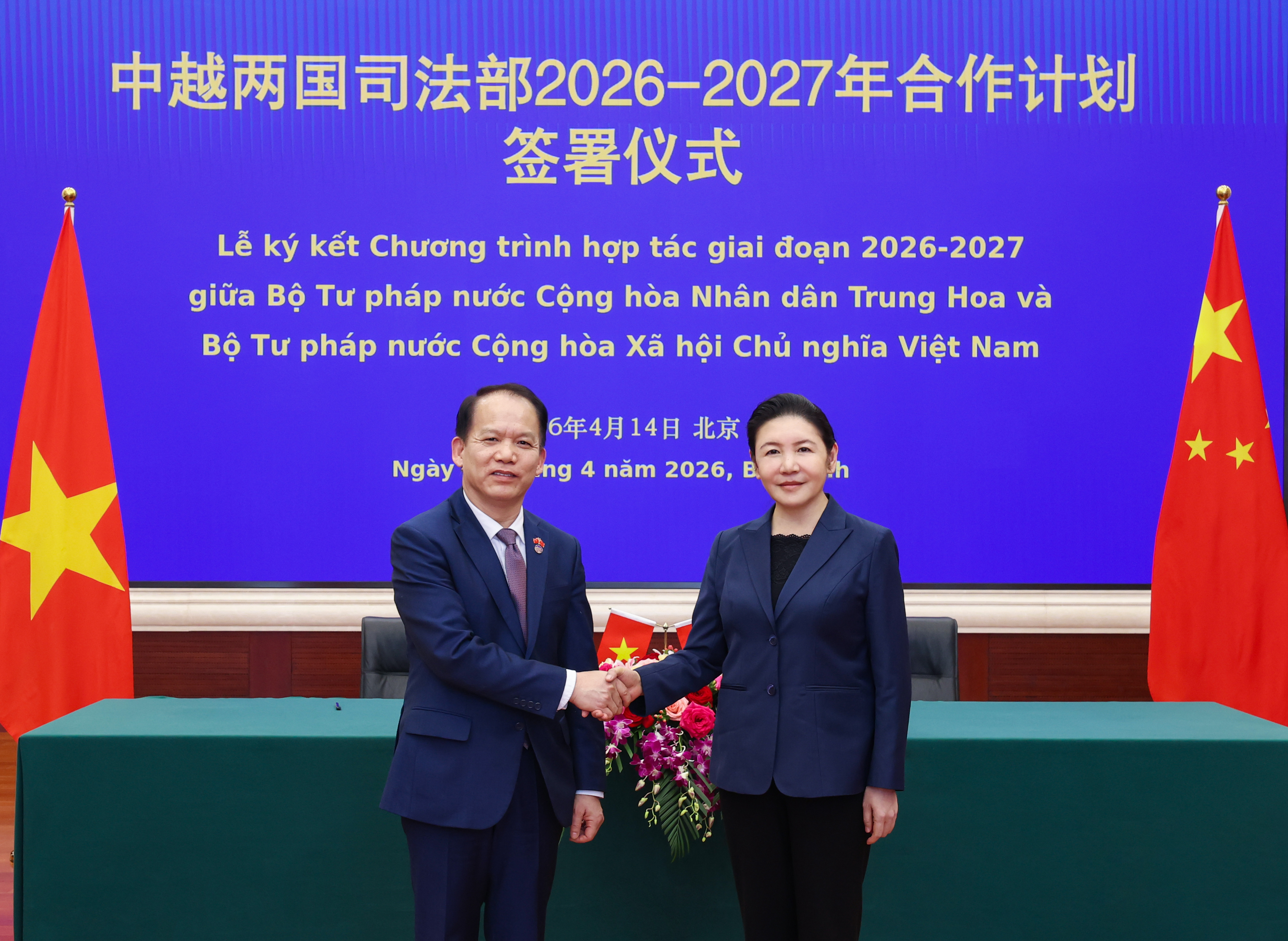 4月14日,司法部部长贺荣在京会见越南司法部部长黄青松一行。双方就健全边境边民民商事纠纷解决机制,深化律师、公证、法治宣传教育、人才培养等方面合作进行了务实深入交流,并签署了《中华人民共和国司法部与越南社会主义共和国司法部2026-2027年合作计划》。
