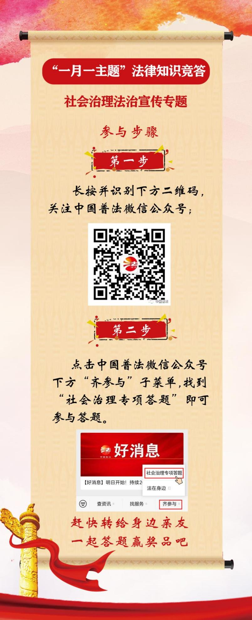 中国普法微信公众号于2026年3月11日至30日组织开展“一月一主题”法律知识竞答・社会治理法治宣传专题活动。