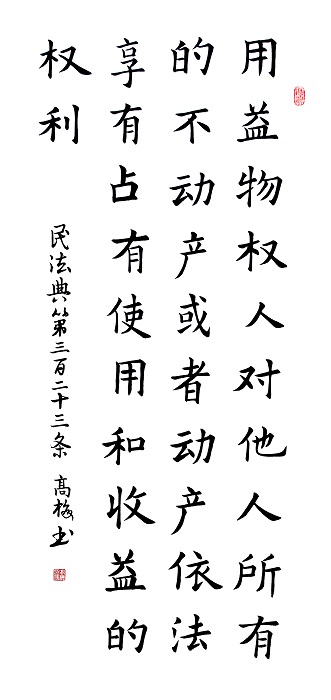 民法典第三百二十三条 用益物权人对他人所有的不动产或者动产,依法享有占有、使用和收益的权利。