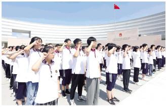 图为江苏省南京市第一中学2023级高一新生在南京宪法公园参加“礼敬宪法·法润青春”活动。