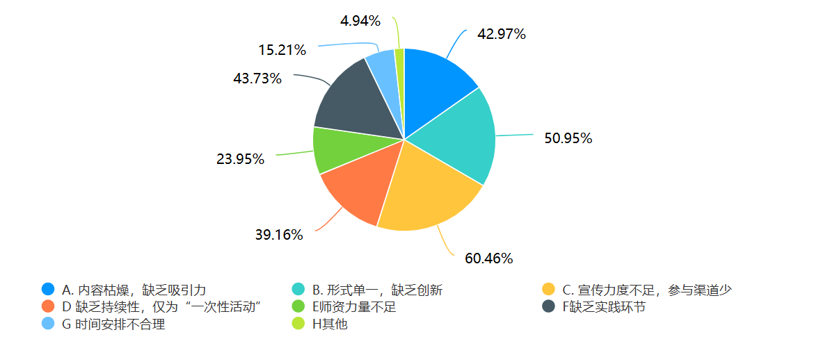 图二:“你认为当前高校普法教育存在哪些问题”多选题的调查问卷结果