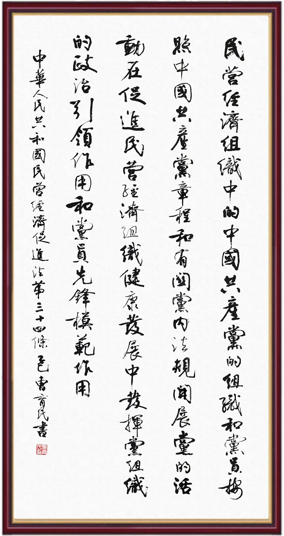 民营经济促进法第三十四条 民营经济组织中的中国共产党的组织和党员,按照中国共产党章程和有关党内法规开展党的活动,在促进民营经济组织健康发展中发挥党组织的政治引领作用和党员先锋模范作用。