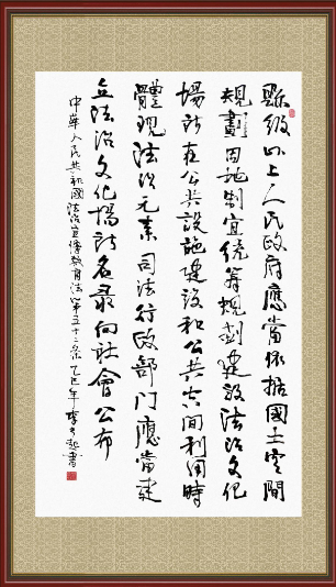 第五十二条 县级以上人民政府应当依据国土空间规划,因地制宜统筹规划、建设法治文化场所,在公共设施建设和公共空间利用时体现法治元素。