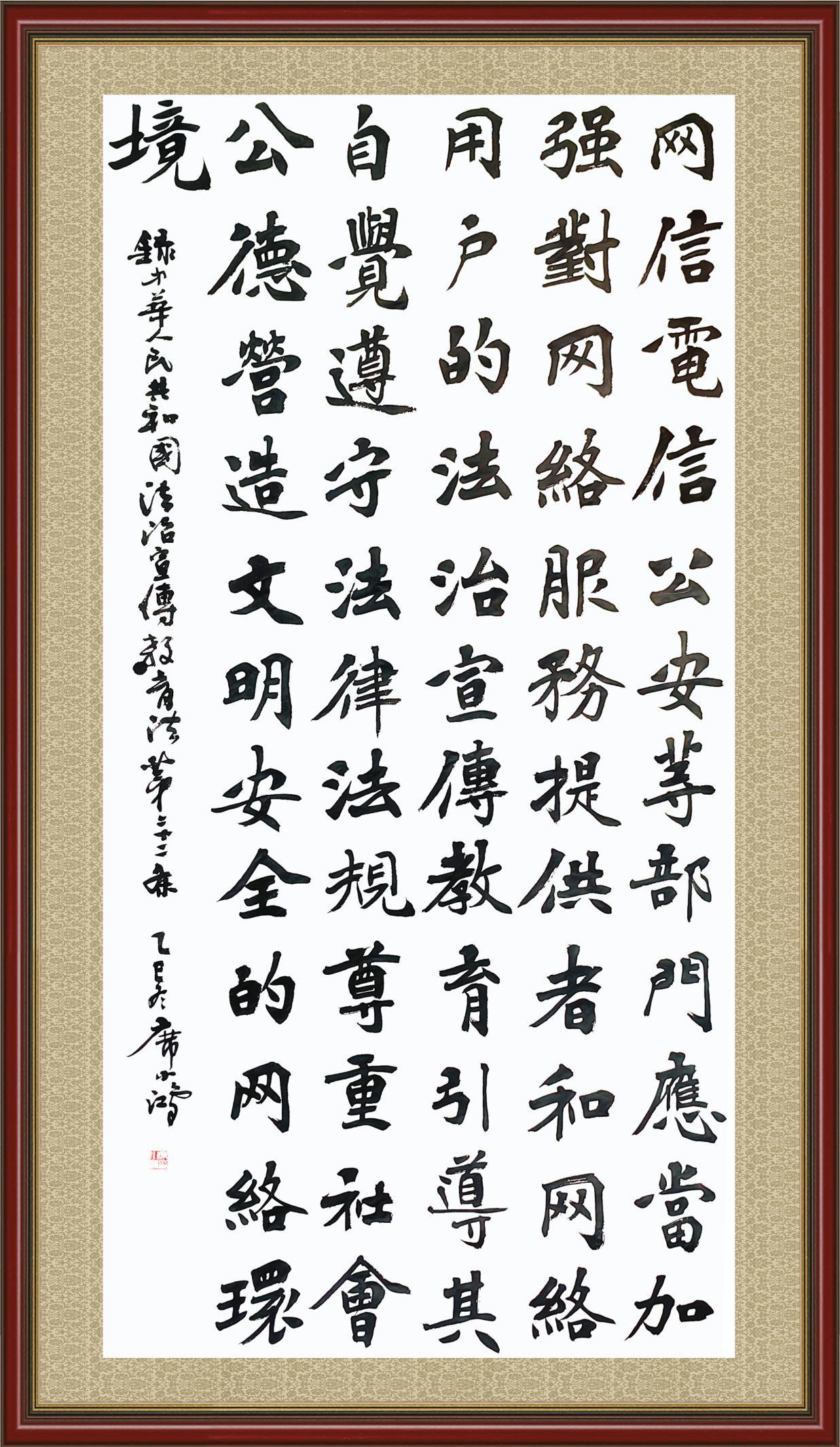 2020年7月11日,由法治日报社主办的“书·法”系列活动正式启动,先后书写《中华人民共和国民法典》《中华人民共和国宪法》《中华人民共和国民营经济促进法》等21部法律法规。