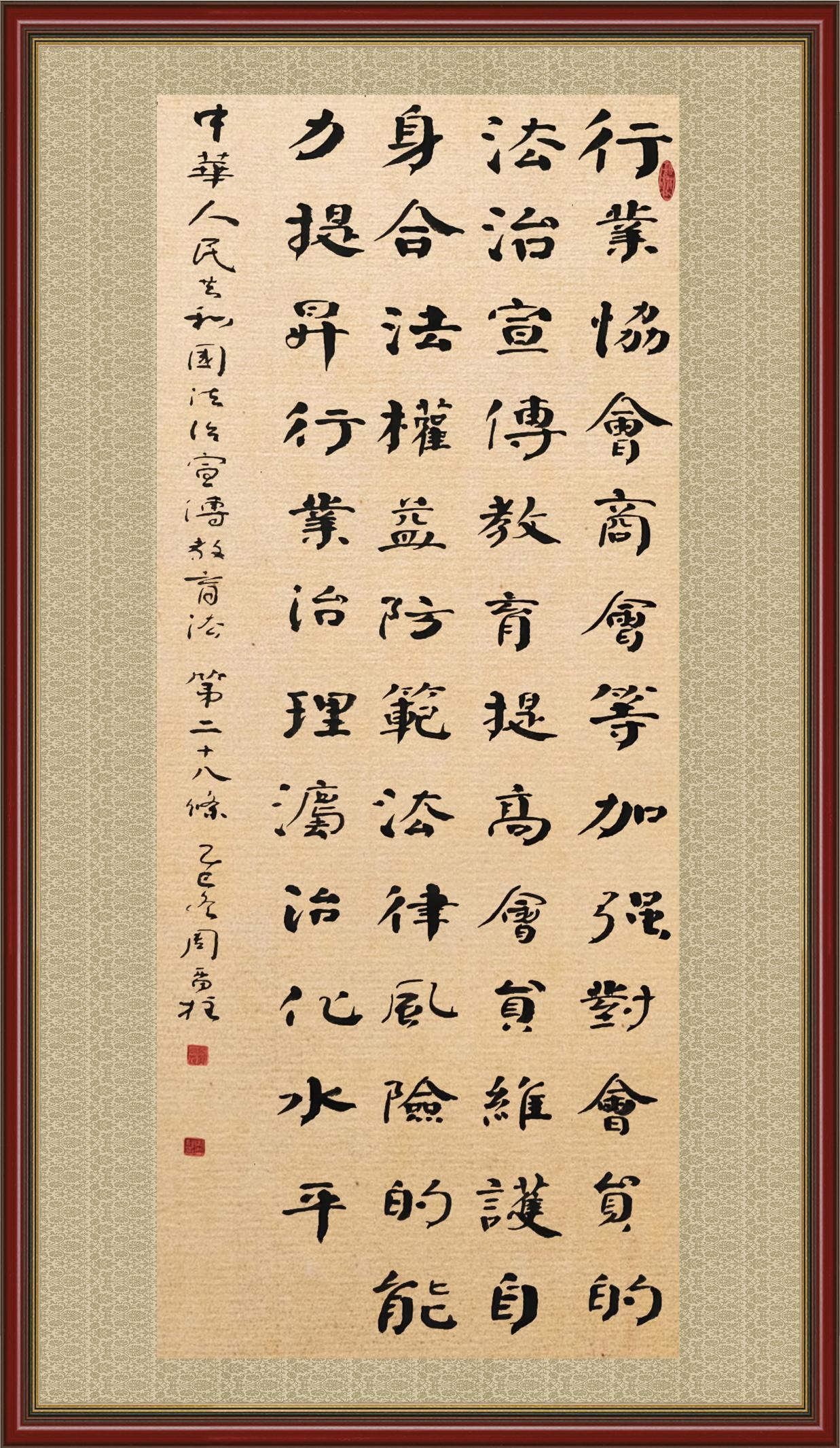 2020年7月11日,由法治日报社主办的“书·法”系列活动正式启动,先后书写《中华人民共和国民法典》《中华人民共和国宪法》《中华人民共和国民营经济促进法》等21部法律法规。