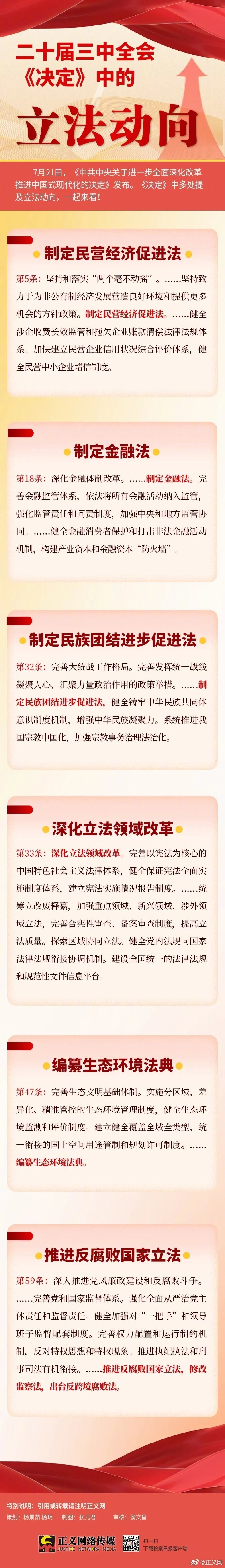 1.二十届三中全会《决定》中的立法动向:21日,《中共中央关于进一步全面深化改革、推进中国式现代化的决定》发布。《决定》中多处提及立法动向,一起来看↓↓↓(检察日报)