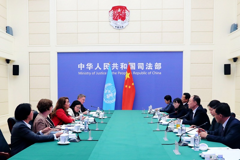 司法部部长贺荣在京会见联合国维也纳办事处总干事兼联合国毒罪办执行主任瓦利一行。