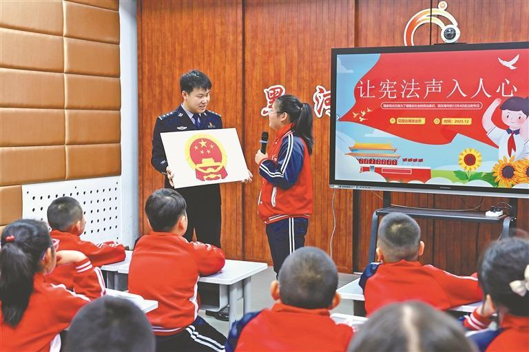 “同学们,你们知道什么是宪法吗?宪法在我们的生活中发挥着怎样的作用……”3日,黑河市第六小学教室里,黑龙江出入境边防检查总站黑河边境管理支队的民警化身法治老师,通过互动问答、视频展示等形式,为孩子们普及宪法知识,激发大家的学习兴趣,让法治的种子在幼小心灵中生根发芽。
